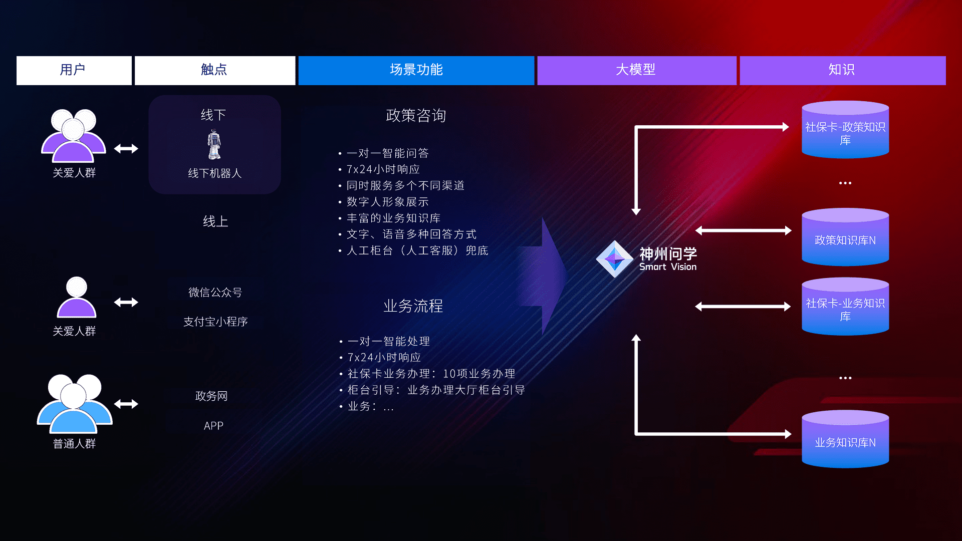 • 线上线下全覆盖:线上提供微信公众号、、、、支付宝小程序、、、政务网、、app多种渠道,,,,与线下机器人形成完整服务体系。。